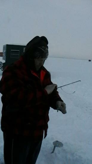 la peche sur glace la nuit tombe !!